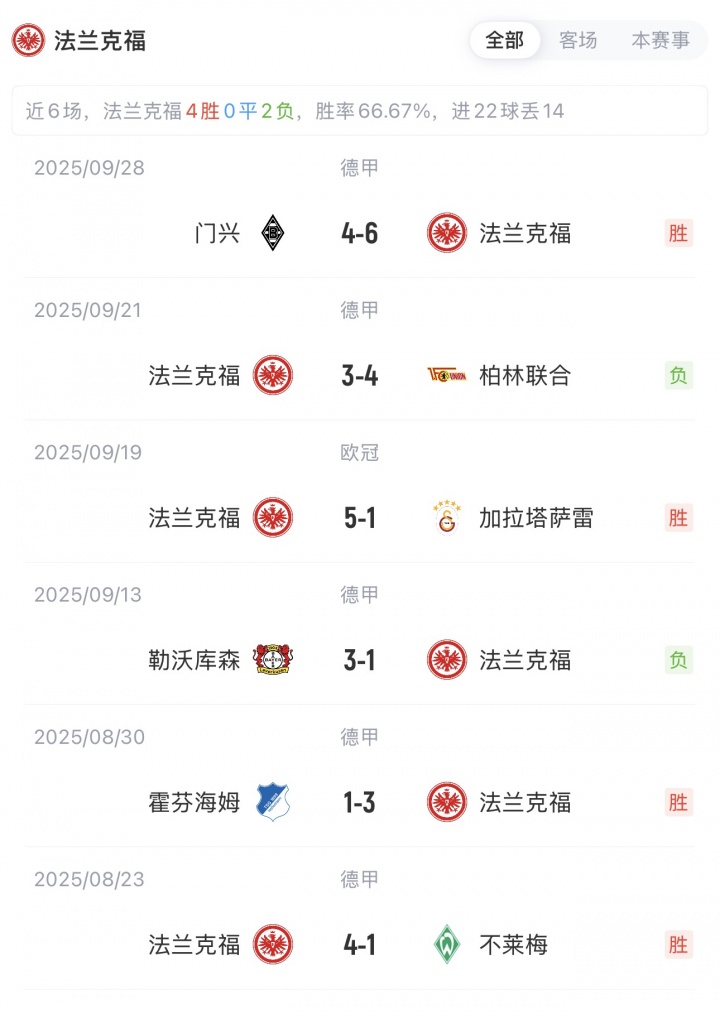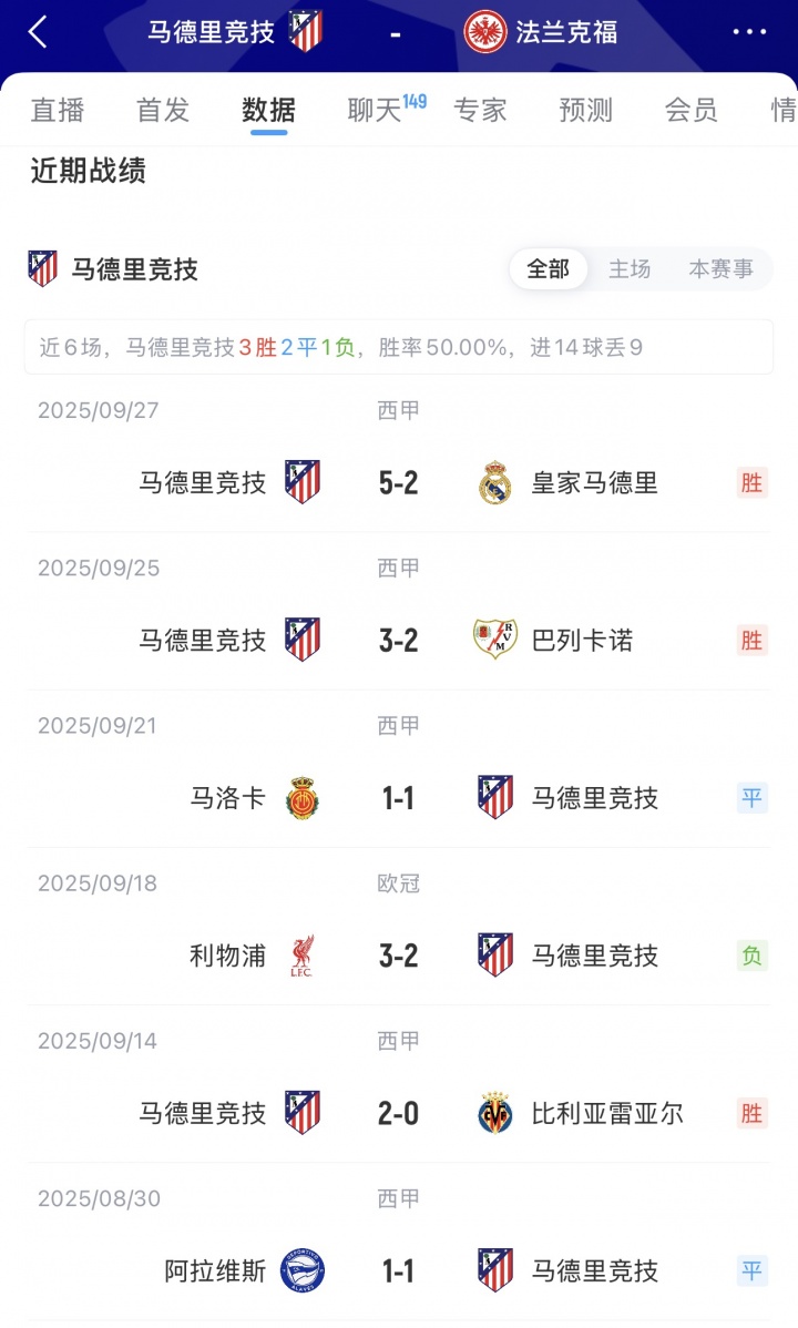欧冠首轮比赛,马竞客场2-3不敌利物浦;法兰克福主场5-1大胜加拉塔萨雷!